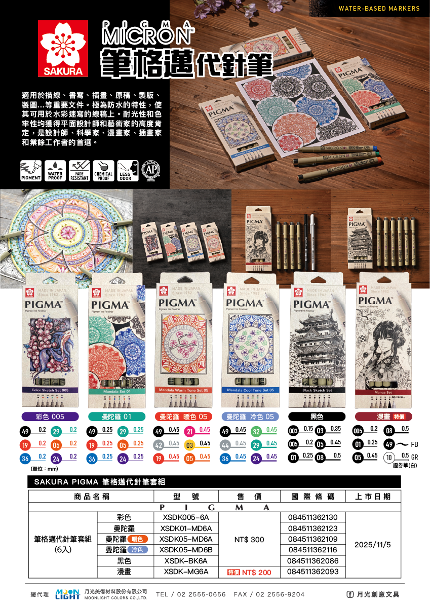 ![【新品即將到貨】日本 SAKURA 櫻花 PIGMA MICRON 筆格邁代針筆 套裝 [6支入] 6款可選 【新品即將到貨】日本 SAKURA 櫻花 PIGMA MICRON 筆格邁代針筆 套裝 [6支入] 6款可選](https://www.artshop.com.tw/image/cache/catalog/SAKURA/PIGMA MICRON/Pigma Micron 代針筆 6款-XSDK-MG6A漫畫-120x120.jpg)