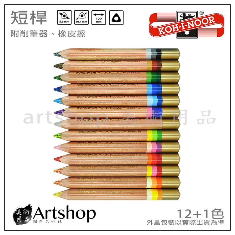 捷克 KOH-I-NOOR 3404N 大三角魔術色鉛筆 (12+1色) (短桿) 附削筆器、橡皮擦