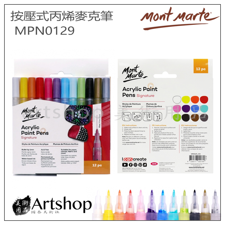 - 型號: 澳洲 蒙馬特 Mont Marte 按壓式丙烯馬克筆 壓克力麥克筆 1mm12色MPN0129
