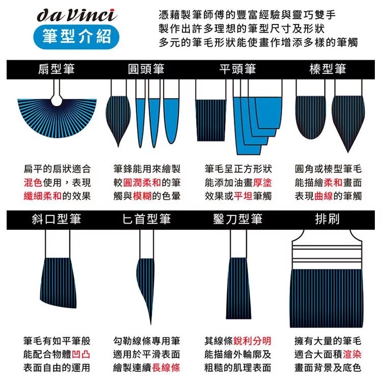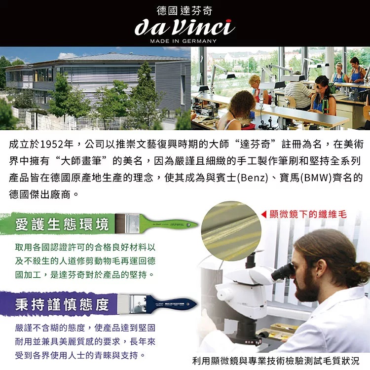 - 型號: 德國 DaVinci 達芬奇 學生級 尼龍畫筆 375 綠桿(半圓)