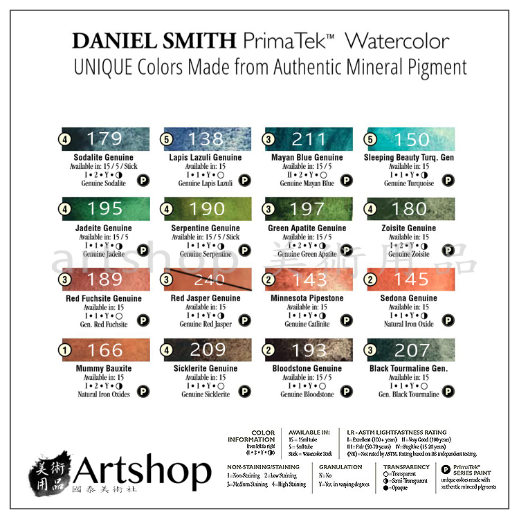 PrimaTek水彩顏料,由礦物質製成,通常是半貴重礦物質,